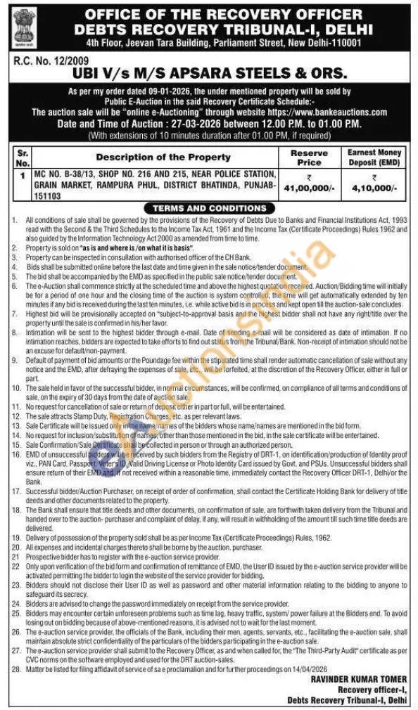 MC NO. B-38/13, SHOP NO. 216 AND 215, NEAR POLICE STATION, GRAIN MARKET, RAMPURA PHUL, DISTRICT BHATINDA, PUNJAB-151103