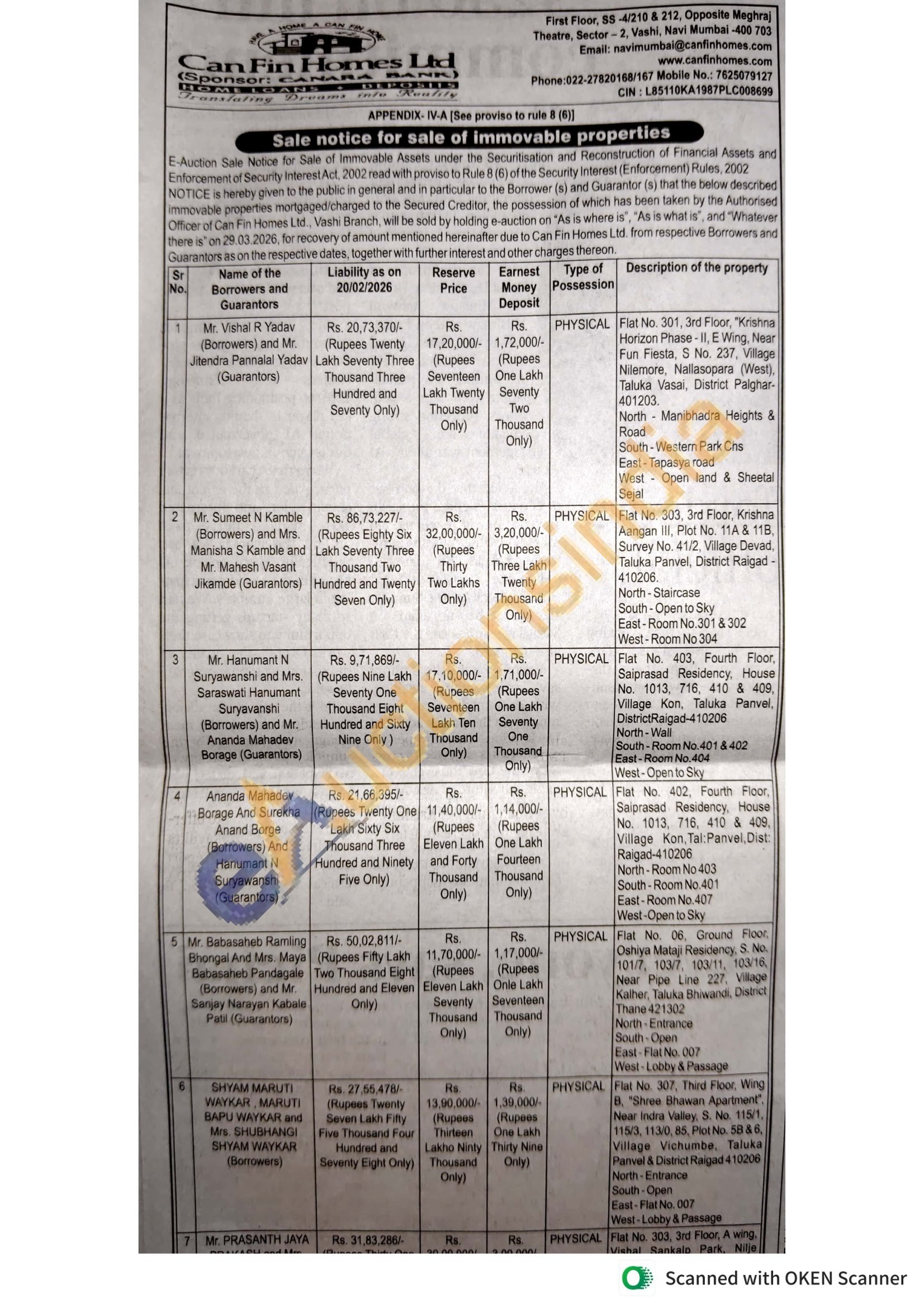 Flat No. 301, 3rd Floor, "Krishna Horizon Phase-II, E Wing, Near Fun Fiesta, S No. 237, Village Nilemore, Nallasopara (West), Taluka Vasai, District Palghar-401203. North Manibhadra Heights & Road South-Western Park Chs East-Tapasya road West Open land & Sheetal Sejal