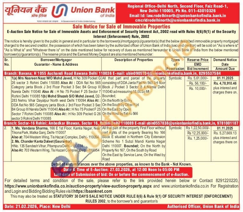 All that part of the property First Floor without roof rights of the property Bearing No 166 Block E situated in Northem City Extension Scheme No 1 Subzi Mandi Kamla Nagar Delhi 110007. Bounded; On the North by Property No 167, On the South by Road On the East by Service Lane, On the West by Road