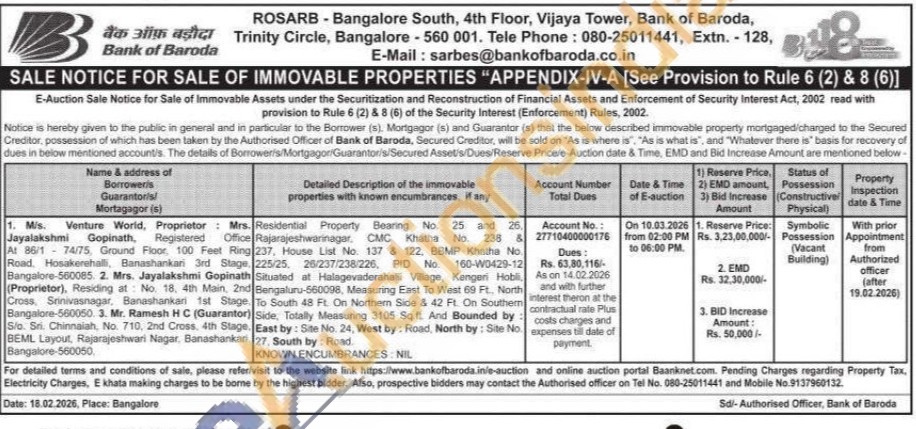 Residential Property Bearing No. 25 and 26. Rajarajeshwarinagar, CMC Khatha No. 238 8 237, House List No. 137 & 122, BBMP Khatha No 225/25, 26/237/238/226, PID No. 160-W0429-12 Situated at Halagevaderahalli Village, Kengeri Hobli. Bengaluru-560096, Measuring East To West 69 Ft. North To South 48 Ft. On Northem Side & 42 Ft. On Southern Side, Totally Measuring 3105 Sq ft. And Bounded by: East by: Site No. 24, West by: Road, North by: Site No 27, South by: Road.