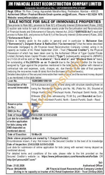 All that pieace and parcel of land along with structure standing there on being the Residential Property plot No. NIL (Patta No. 39), Situated at Village Hurda, Gram Panchayat Hurda, Panchayat Samis Hurda Dist Bhiwara (Rajj Area admeasuring 70.68 Sq. yard Bounded as East-Road, West-Kamlesh Purohit. North - Suresh Purohit, South - Road