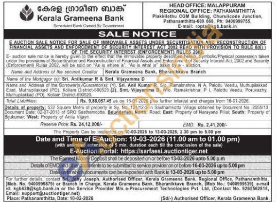 Details of property: 532 Square Metre of property in Sy. No. 121/12-3 in Sasinamkotta Village obtained by Document No. 2055/13 Document Date: 02-07-2013 of SRO Sasthamcotta Boundaries, North: Road: East: Property of Narayana Pillai, South: Property of Bijukumar, West: Property of Anila Vijayn