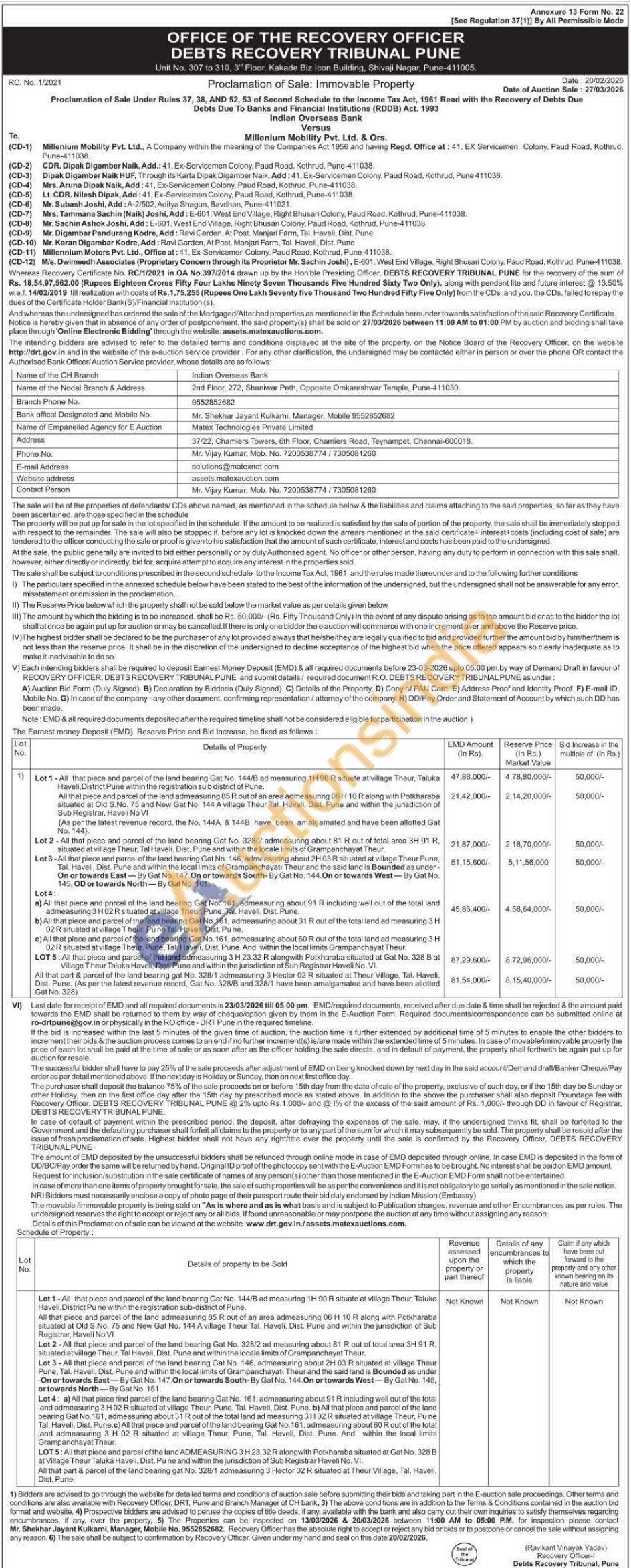 All that part & parcel of the land bearing gat No. 328/1 admeasuring 3 Hector 02 R situated at Theur Village, Tal. Haveli, Dist. Pune. (As per the latest revenue record, Gat No. 328/B and 328/1 have been amalgamated and have been allotted Gat No. 328)