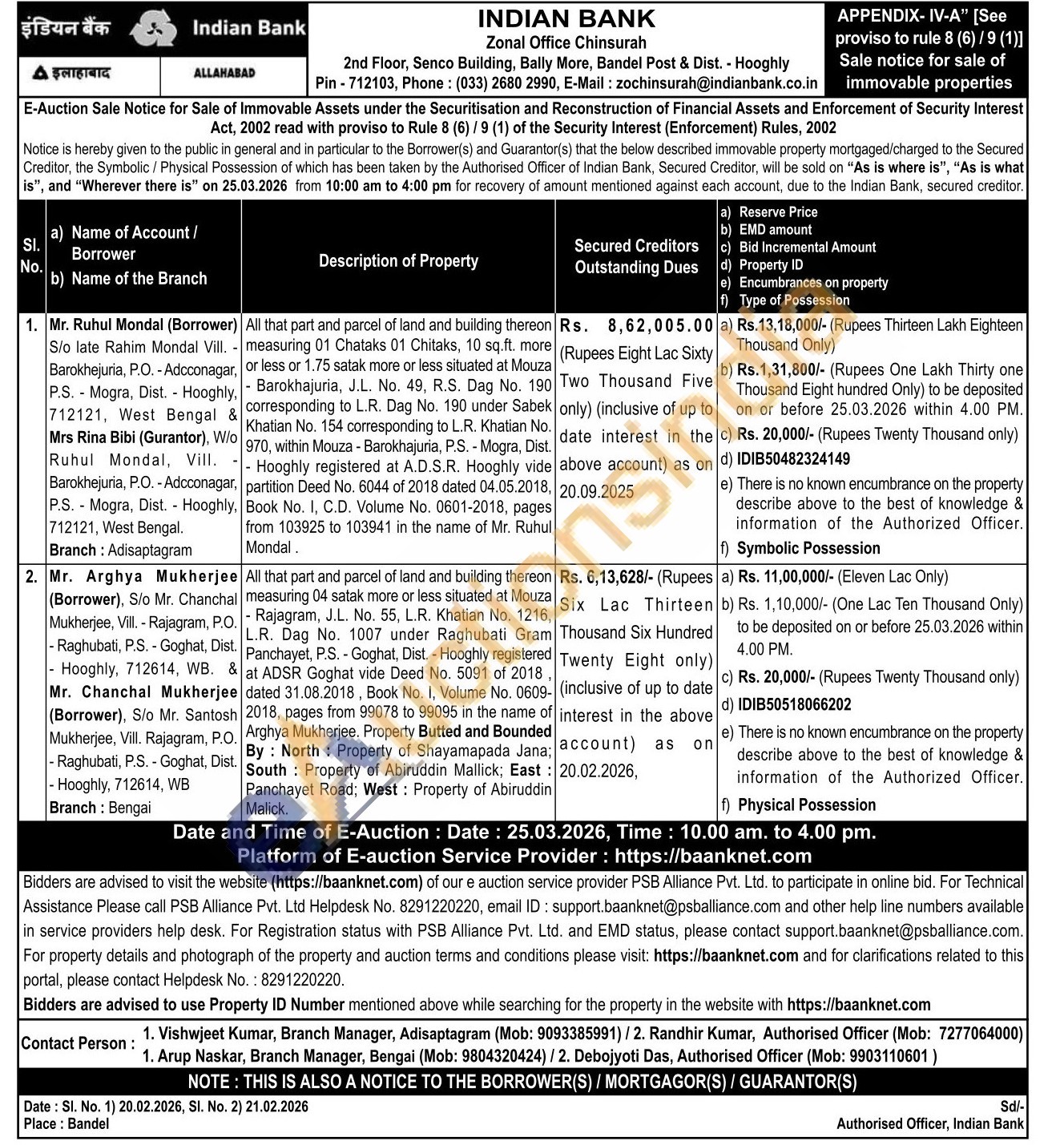 All that part and parcel of land and building thereon measuring 04 satak more or less situated at Mouza - Rajagram, J.L. No. 55, L.R. Khatian No. 1216, L.R. Dag No. 1007 under Raghubati Gram . Panchayet, P.S. - Goghat, Dist. - Hooghly registered at ADSR Goghat vide Deed No. 5091 of 2018, dated 31.08.2018, Book No. I, Volume No. 0609-2018, pages from 99078 to 99095 in the name of Arghya Mukherjee. Property Butted and Bounded By: North: Property of Shayamapada Jana; South Property of Abiruddin Mallick; East: Panchayet Road; West: Property of Abiruddin Malick.