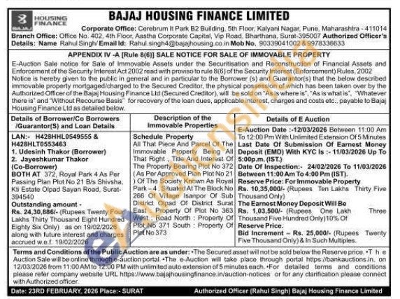 All That Piece And Parcel Of The Immovable Property Being All That Right, Title And Interest Of The Property Bearing Plot No 372 (As Per Approved Plan Plot No 21 )Of The Society Known As Royal Park-4, Situated At The Block No 266 Of Village Isanpor Of Sub District Olpad Of District Surat East Property Of Plot No 363 West: Road North Property Of Plot No 371 South Property Of Plot No 373