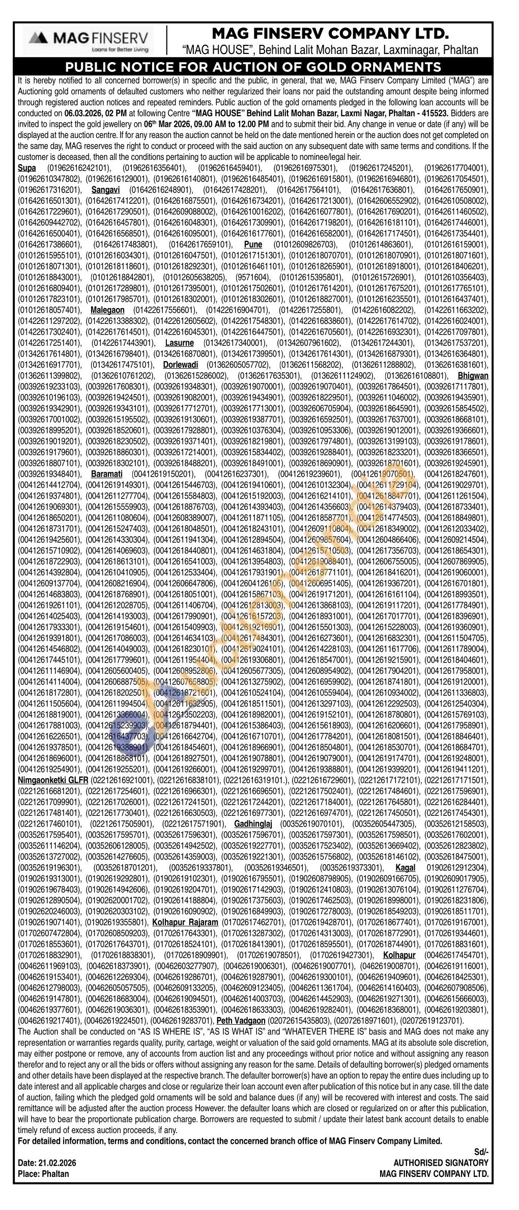 MAG Finserv Company Limited Gold Auctions Auction in Pune