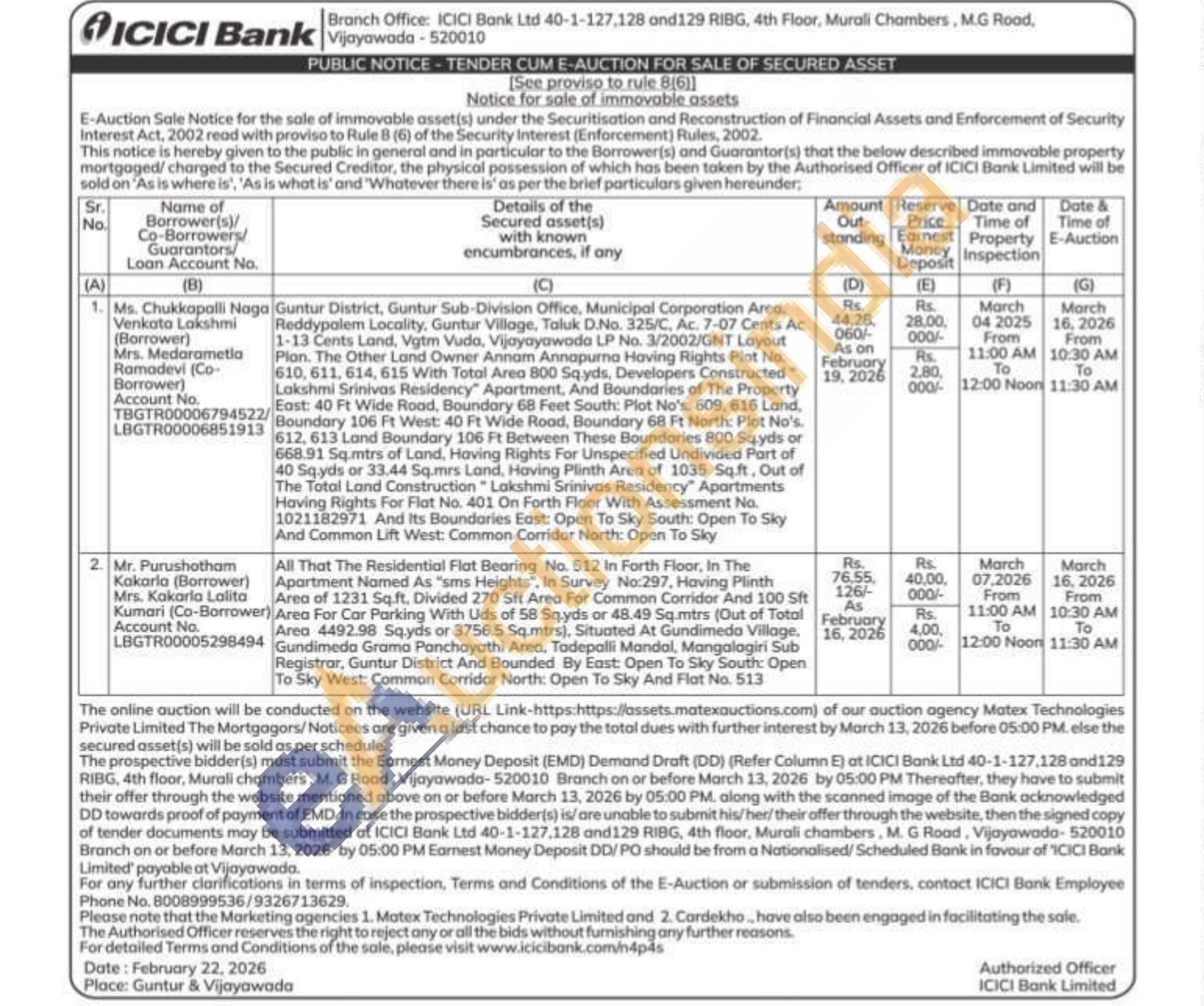 All That The Residential Flat Bearing No. 512 In Forth Floor, In The Apartment Named As "sms Heights", In Survey No:297, Having Plinth Area of 1231 Sq.ft. Divided 270 Sft Area For Common Corridor And 100 Sft Area For Car Parking With Uds of 58 Sq.yds or 48.49 Sq.mtrs (Out of Total Gundimeda Grama Panchayathi Area, Tadepalli Mandal, Mangalagiri Sub Area 4492.98 Sq.yds or 3756.5 Sq.mtrs), Situated At Gundimeda Village, Registrar, Guntur District And Bounded By East: Open To Sky South: Open To Sky West: Common Corridor North: Open To Sky And Flat No. 513