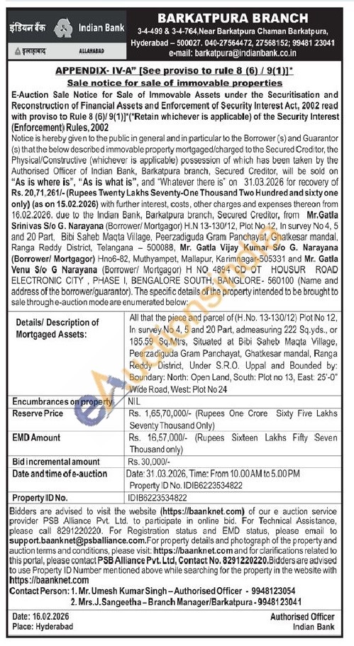 Mr. Umesh Kumar Singh-Authorised Officer 9948123054 / Mrs.J.Sangeetha-Branch Manager/Barkatpura-9948123041