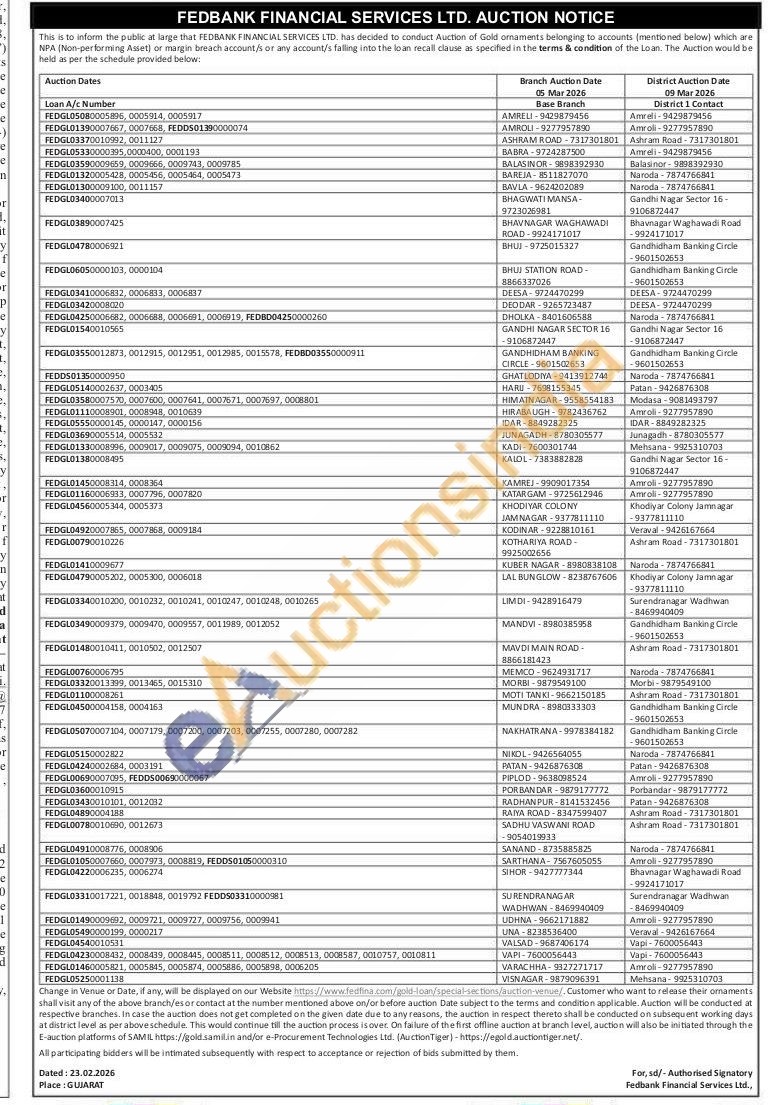 Fedbank Financial Services Ltd Gold Auctions Auction in Amreli