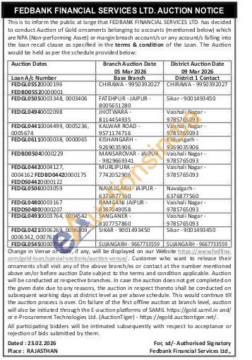 Fedbank Financial Services Ltd Gold Auctions Auction in Sikar