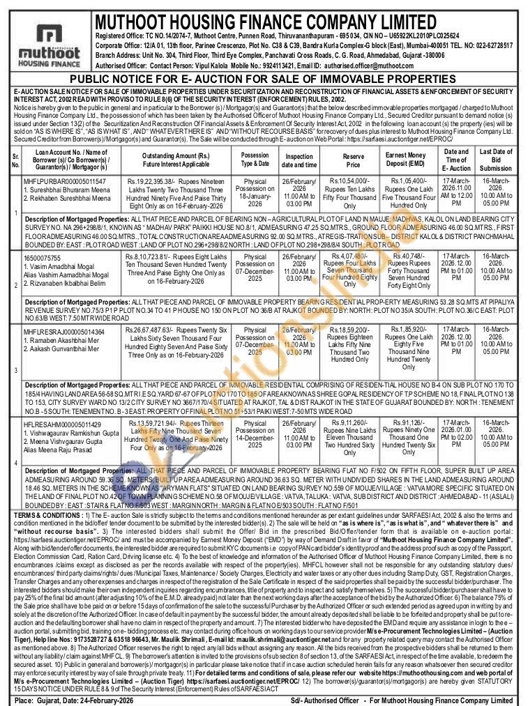Description of Mortgaged Properties: ALL THAT PIECE AND PARCEL OF IMMOVABLE RESIDENTIAL COMPRISING OF RESIDEN-TIAL HOUSE NO B-4 ON SUB PLOT NO 170 TO 185/4 HAVING LANDAREA 56-58 SQ.MTRIESQ.YARD 67-67 OFPLOTNO 170 TO 185 OF AREAKNOWNAS SHREE GOPAL RESIDENCY OF TP SCHEME NO 18, FINAL PLOTNO 138 TO 153, CITY SURVEY WARD NO 13/2 CITY SURVEY NO 3667/170/4 SITUATED AT RAJKOT, TAL & DIST RAJKOT IN THE STATE OF GUJARAT BOUNDED BY: NORTH: TENEMENT NO.B-5SOUTH: TENEMENTNO.B-3EAST PROPERTY OF FINAL PLOTNO 51+53/1 PAIKI WEST:7-50 MTS WIDE ROAD