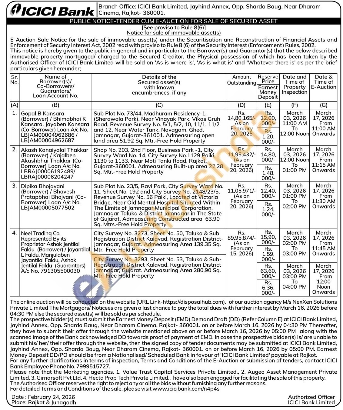 Sub Plot No. 23/5, Ravi Park, City Survey Ward No. 11, Sheet No. 192 and City Survey No. 2148/23/5, Revenue Survey No. 56 Paiki, Located at Victoria Bridge, Near Old Mental Hospital Situated Within The Limits of Jamnagar Municipal Corporation, Jamnagar Taluka & District Jamnagar in The State of Gujarat. Admeasuring Constructed area 63.90 Sq. Mtrs.-Free Hold Property