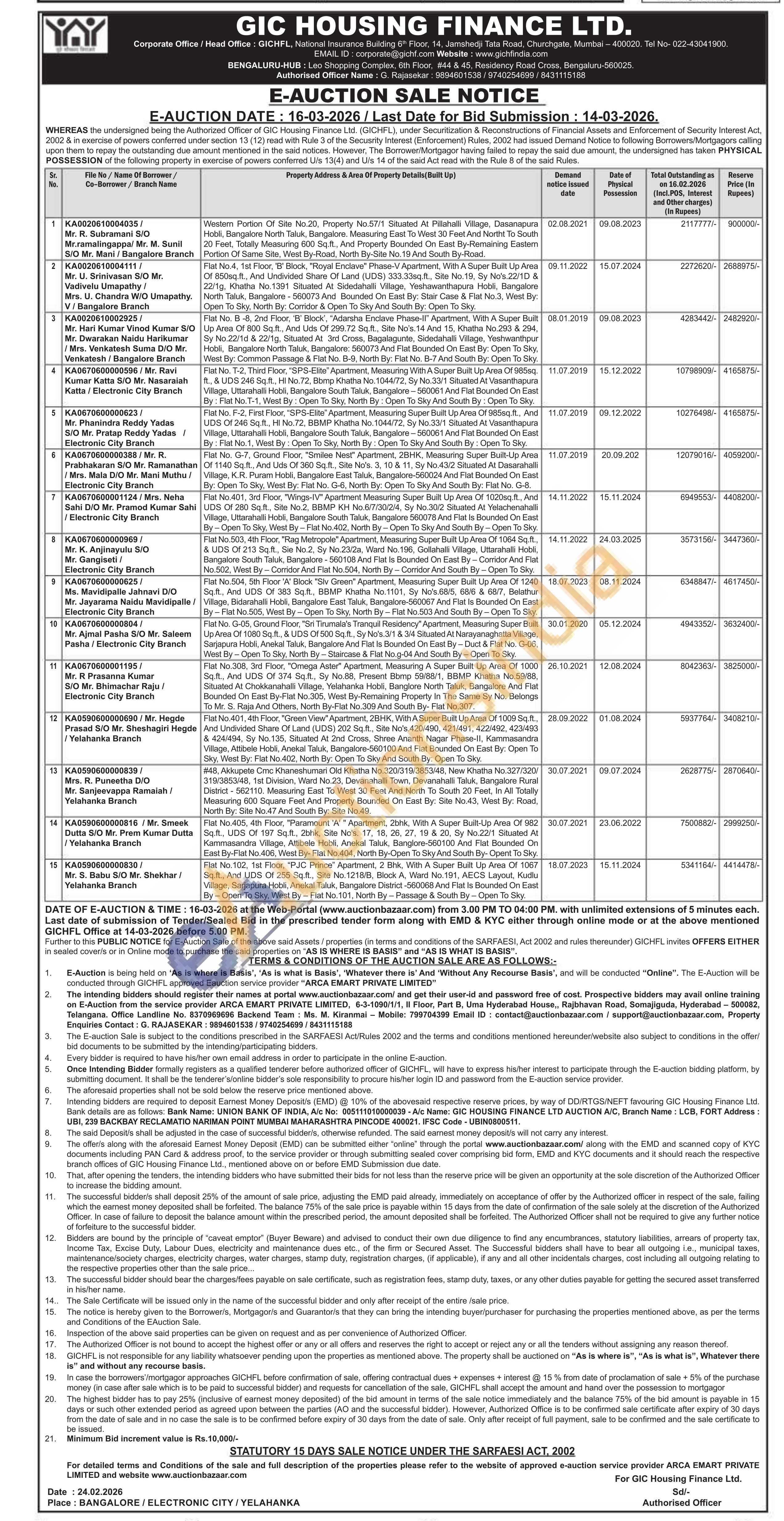 Contact Authorised Officer Name: G. Rajasekar: 9894601538/9740254699/8431115188