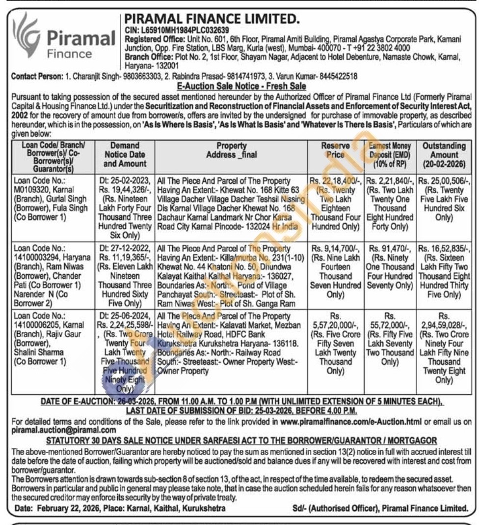 All The Piece And Parcel of The Property Having An Extent:- Kalavati Market, Mezban Hotel Railway Road, HDFC Bank Kurukshetra Kurukshetra Haryana- 136118. Boundaries As:- North:- Railway Road South:- Streeteast:- Owner Property West:-Owner Property