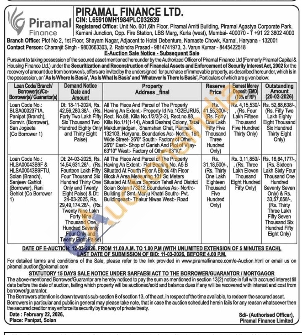 All The Piece And Parcel of The Property Having An Extent:- Property Id No.1G2EURU5, Rect. No.88, Killa No.1/2/2(2-2), Rect.no.88, Killa No.1/1(1-14), Abadi Deshraj Colony, Taraf Makdumjadgan, Shamshan Ghat, Panipat-132103, Haryana. Boundaries As:- North:-16ft Wide Street-26'0" South:- Factory of Other-26'0" East:- Shop of Garish And Plot of Vijay-63'10" West:- Factory of Other-63'10