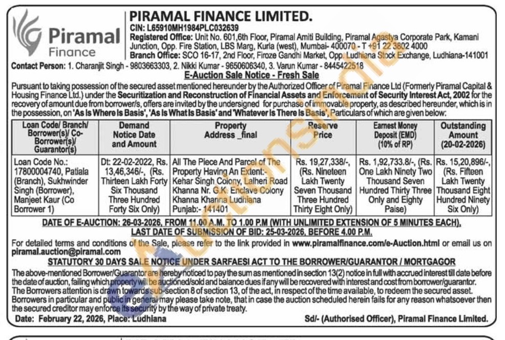 All The Piece And Parcel of The Property Having An Extent:-Kehar Singh Colony, Lalheri Road Khanna Nr. G.K. Enclave Colony Khanna Khanna Ludhiana Punjab:-141401