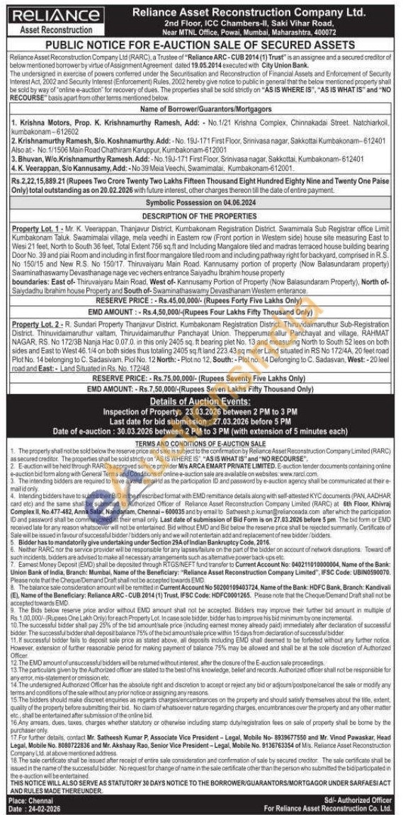 Property Lot. 2-R. Sundari Property Thanjavur District. Kumbakonam Registration District. Thiruvidaimaruthur Sub-Registration District. Thinuvidaimaruthur valtam, Thiruvidaimaruthur Panchayat Union. Thepperumanallur Panchayat and village. RAHMAT NAGAR, RS. No 172/3B Nanja Hac 0.07.0. in this only 2405 sq. ft bearing plet No. 13 and measuring North to South 52 lees on both sides and East to West 46.1/4 on both sides thus totaling 2405 sq.ft land 223.43 sq meter Land situated in RS No 172/4A, 20 feet road Plot No. 14 belonging to C. Sadasivam. Piol No. 12 North: -Plot no 12, South: Plot no. 14 Defonging to C. Sadasvan, West:-20 leel road and East:- Land Situated in Rs. No. 172/48