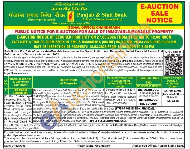 (1) Land measuring 3 Biswe 7.66 Biswansis i.e. 203/7200 share out of total land 6 Bighe comprised in Khata No. 313/702, Khasra 1133/303(2-9), 1134/304(3-11) jamabandi for the year 2005-06, land situated within the Revenue Estate of Village Jassran (Hadbast No. 2), Sub Tehsil Mandi Gobindgarh, District Fatehgarh Sahib vide Tittle Deed No. 2634 dated 29.03.2010 (registered in the Olo Jt Sub Registrar, Mandi Gobindgarh
