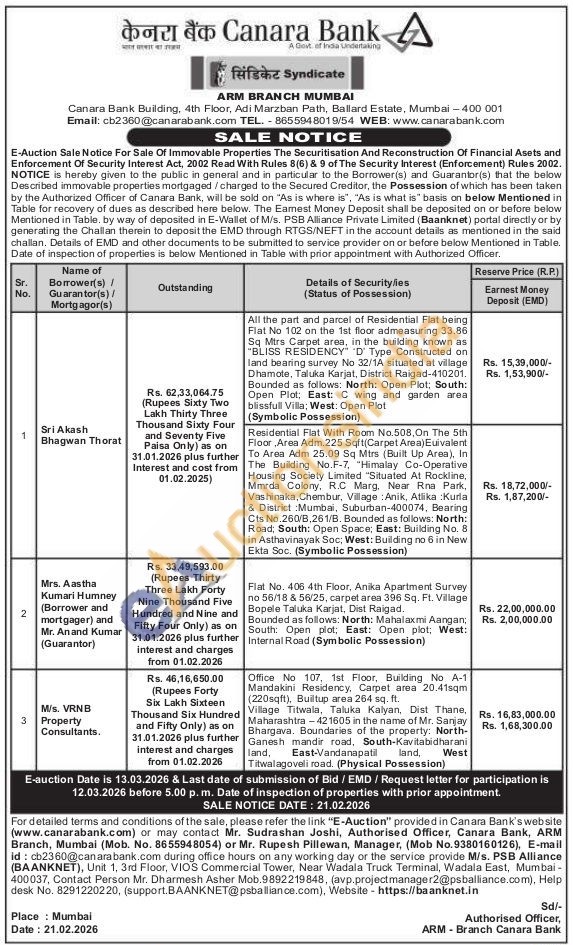 Flat No. 406 4th Floor, Anika Apartment Survey no 56/18 & 56/25, carpet area 396 Sq. Ft. Village Bopele Taluka Karjat, Dist Raigad. Bounded as follows: North: Mahalaxmi Aangan; South: Open plot; East: Open plot, West: Internal Road (Symbolic Possession)