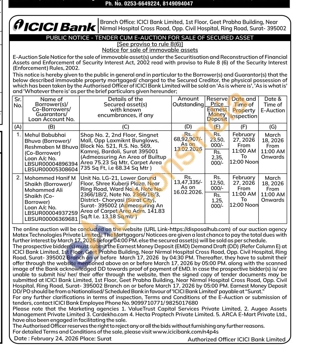 Shop No. 2, 2nd Floor, Singnet Mall, Opp Laxmiknt Bunglows, Kamrej, Bardoli, Surat 395001 (Admeasuring An Area of Builtup Block No. 521, R.S. No. 569, Area 75.23 Sq Mtr, Carpet Area 735 Sq Ft, i.e 68.34 Sq Mtr)