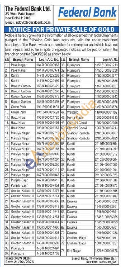 Federal Bank Gold Auctions Auction in New Delhi