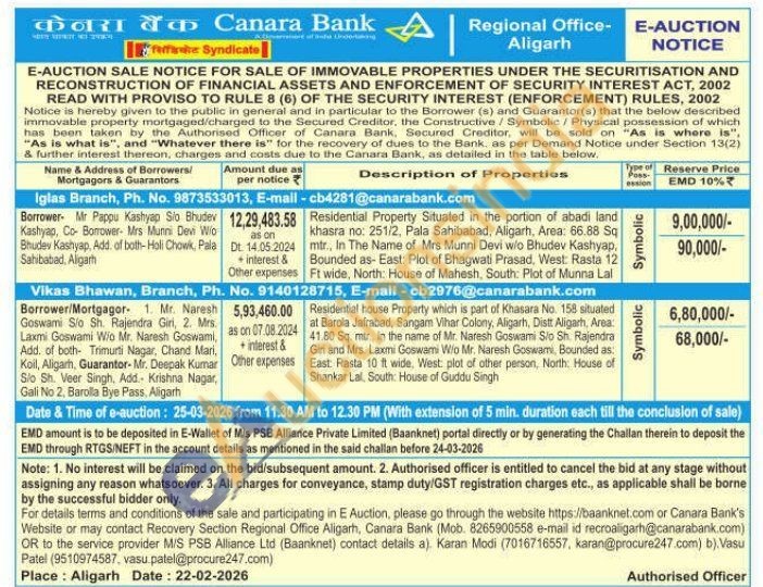 Residential house Property which is part of Khasara No. 158 situated at Barcia Jafrabad, Sangam Vihar Colony, Aligarh, Distt Aligarh, Area: 41.80 Sq. mtr, in the name of Mr. Naresh Goswami Sic Sh. Rajendra Gin and Mrs. Laxmi Goswami W/o Mr. Naresh Goswami, Bounded as East: Rasta 10 ft wide. West plot of other person, North House of Shankar Lal, South: House of Guddu Singh