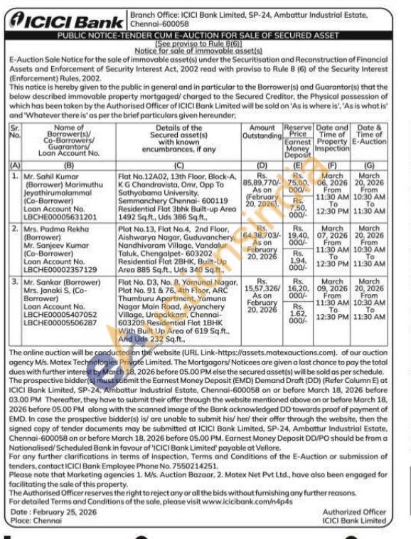 Plot No.13, Flat No.4, 2nd Floor, Aishwarya Nagar, Guduvanchery, Nandhivaram Village, Vandalur Taluk, Chengalpet-603202 Residential Flat 2BHK, Built-Up Area 885 Sq.ft., Uds 340 Sq.ft..