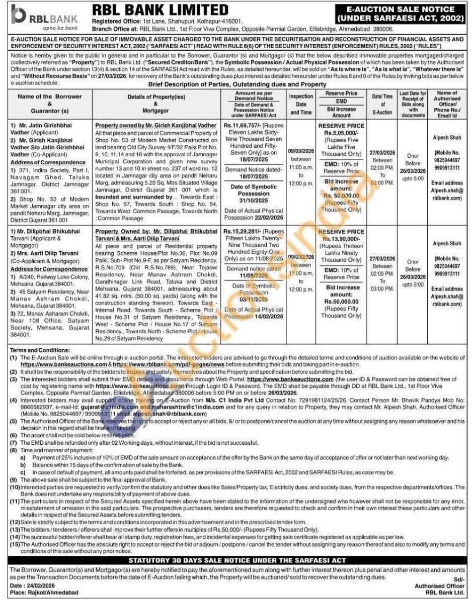 All that piece and parcel of Commercial Property of Shop No. 53 of Modern Market Constructed on land bearing Old City Survey 4/F/32 Paiki Plot No. 9, 10, 11,14 and 16 with the approval of Jamnagar Municipal Corporation and given new survey number 13 and 10 in sheet no. 237 of word no. 12 located in Jamnagar city area on pandit Neharu Marg, admeasuring 5.20 Sq. Mtrs Situated Village Jamnagar, District Gujarat 361 001 which is bounded and surrounded by... Towards East: Shop No. 57, Towards South Shop No. 54, Towards West: Common Passage, Towards North Common Passage