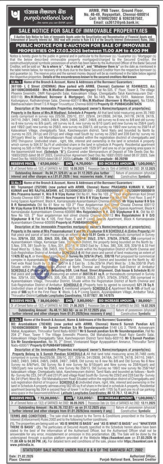 Property Belong to S Suresh Pandian SCHEDULE-A All that land total measuring acres 35.7483 cents comprised in survey Nos225/38, 226/10, 227, 229/1A, 241/2838, 247/6A, 247/78, 247/8, 247/10, 248/1, 248/2, 248/3, 248/4, 248/5, 248/6, 248/7, 248/8, Old survey no 8 new No 8/8 and Old Survey No 8 New Survey no 8/9(Part), Old Survey No 8 new Survey No 8/10(part) and New survey no 258/4(part) and 199/2(part) new survey No 258/3, new Survey No 258/13, Old Survey no 199/2 new survey No 258/14of kalavakkam village, Chengalpattu taluk, Kancheepuram district, Tamil Nadu and bounded as follows:- North By-Survey No 223, 241(P) and 231(P) and village Road South By- Survey No 229/2 and 228 East By-Survey No 241(Part) West By-Old Mahabalipuram Road Situated within the registration district of Chengalpattu and sub registration district of tiruporur SCHEDULE-8 Undivided share, right, title, interest and ownership in the land in Schedule A property admeasuring 562 65 sq.ft of share in the land in schedule A property. Residential apartment bearing No 204 in second floor of tower 1 in the project with 1705 Sq.