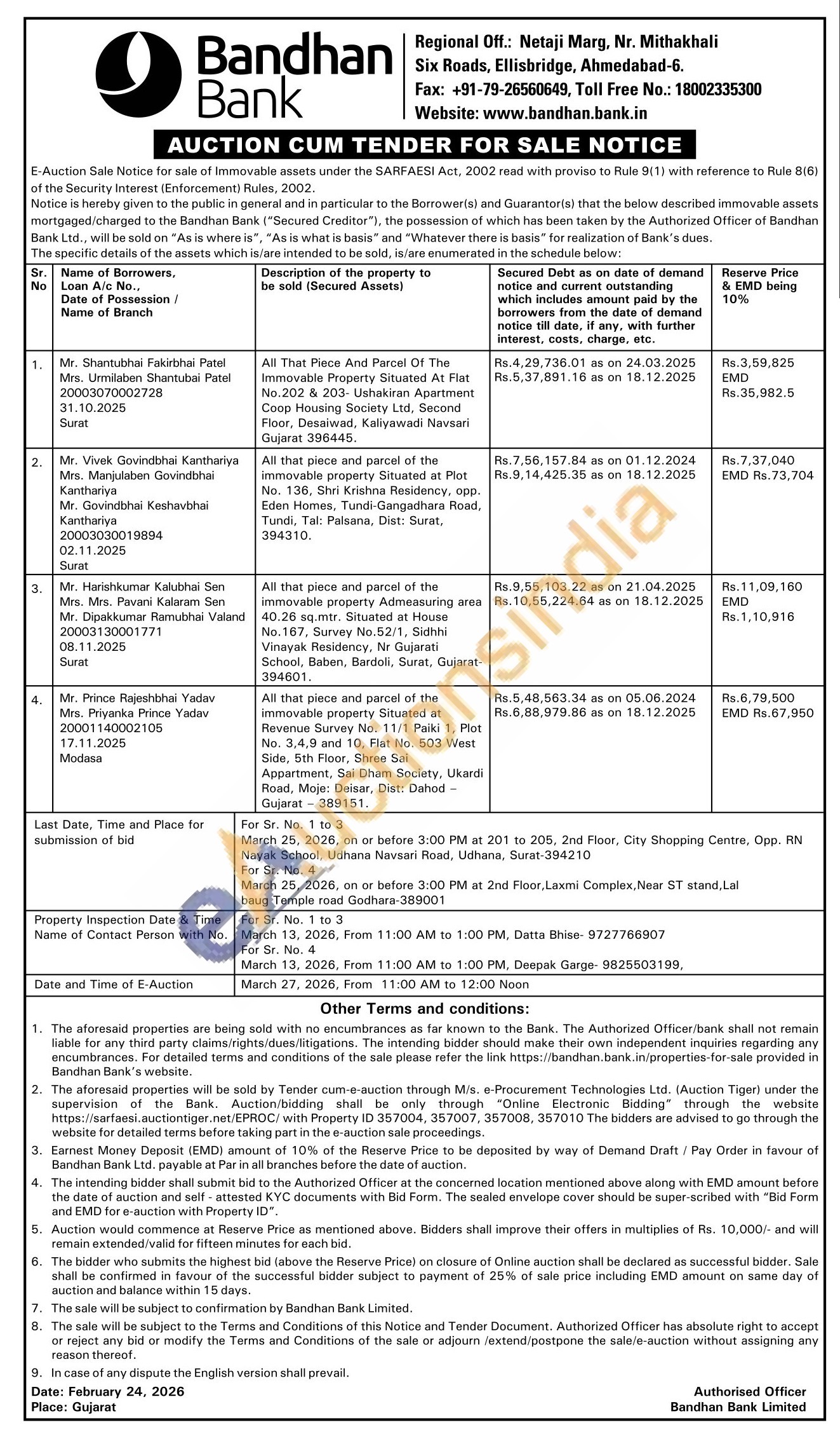 All that piece and parcel of the immovable property Admeasuring area 40.26 sq.mtr. Situated at House No.167, Survey No.52/1, Sidhhi Vinayak Residency, Nr Gujarati School, Baben, Bardoli, Surat, Gujarat-394601.