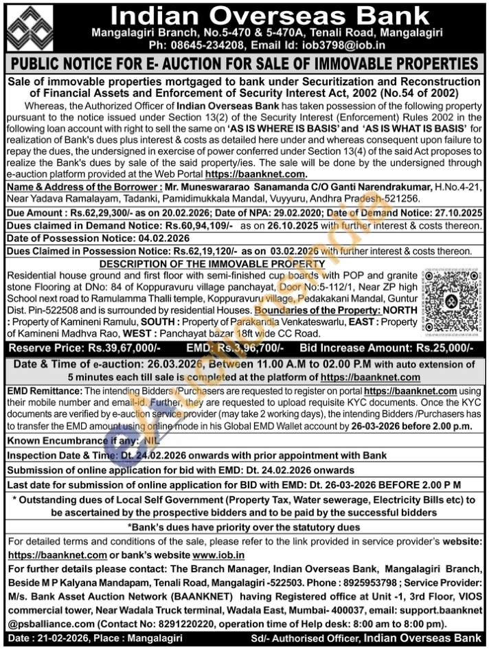 Residential house ground and first floor with semi-finished cup boards with POP and granite stone Flooring at DNo: 84 of Koppuravuru village panchayat, Door No:5-112/1, Near ZP high School next road to Ramulamma Thalli temple, Koppuravuru village, Pedakakani Mandal, Guntur Dist. Pin-522508 and is surrounded by residential Houses. Boundaries of the Property: NORTH : Property of Kamineni Ramulu, SOUTH: Property of Parakandla Venkateswarlu, EAST: Property of Kamineni Madhva Rao, WEST: Panchayat bazar 18ft wide CC Road.