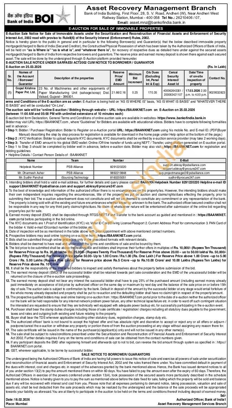23 No. of Machineries and other equipments of Paper Manufacturing Unit (salvage/scrap) Dist. Valsad, Gujarat-396001.