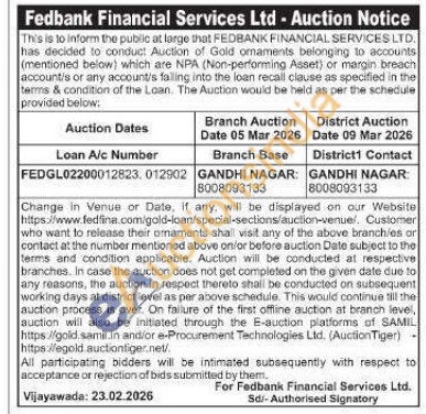 Fedbank Financial Services Ltd Gold Auctions Auction in Vijayawada