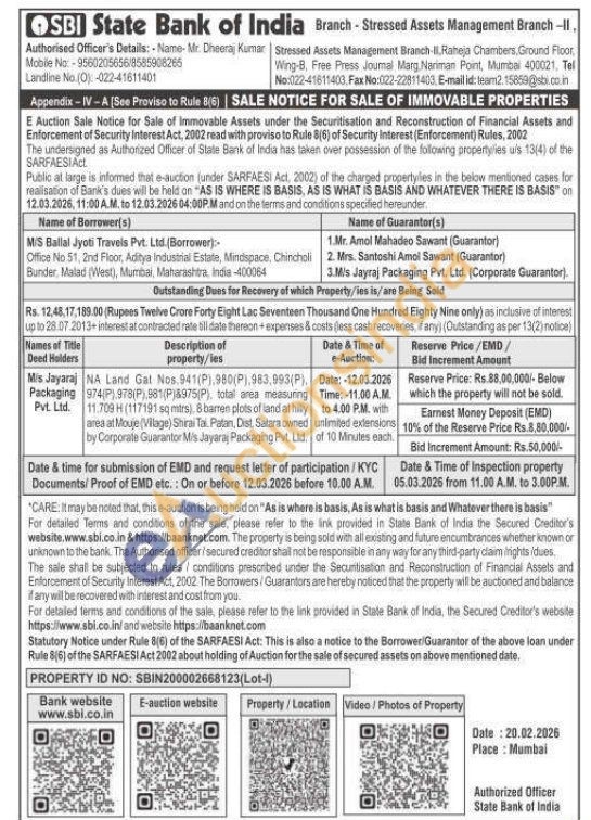 NA Land Gat Nos.941(P),980(P),983,993(P), 974(P),978(P),981(P)&975(P), total area measuring 11.709 H (117191 sq mtrs), 8 barren plots of land at hilly area at Mouje (Village) Shirai Tai Patan, Dist. Satara owned by Corporate Guarantor Mis Jayaraj Packaging Pvt. Ltd.