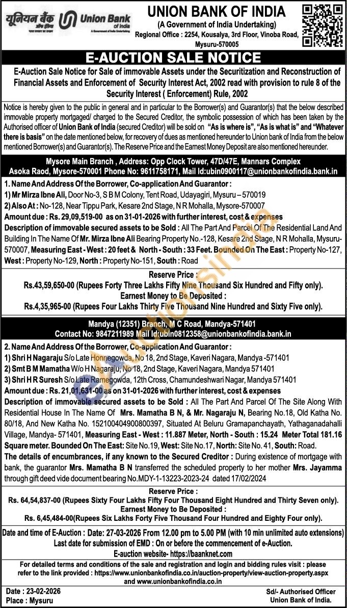 All The Part And Parcel Of The Site Along With Residential House In The Name Of Mrs. Mamatha B N, & Mr. Nagaraju N, Bearing No. 18, Old Katha No. 80/18, And New Katha No. 152100404900800397, Situated At Beluru Gramapanchayath, Yathaganadahalli Village, Mandya-571401, Measuring East-West: 11.887 Meter, North-South: 15.24 Meter Total 181.16 Square meter. Bounded On The East: Site No. 19, West: Site No.17, North: Site No. 41, South: Road. The details of encumbrances, if any known to the Secured Creditor: During existence of mortgage with bank, the guarantor Mrs. Mamatha BN transferred the scheduled property to her mother Mrs. Jayamma through gift deed vide document bearing No.MDY-1-13223-2023-24 dated 17/02/2024