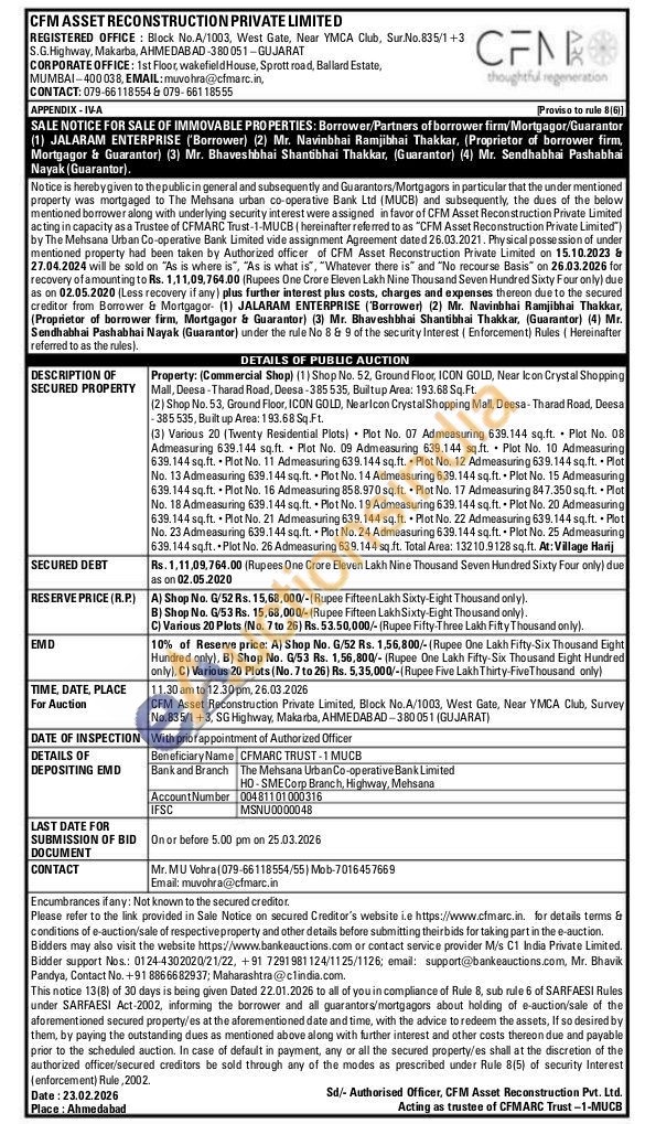 Various 20 (Twenty Residential Plots) Plot No. 07 Admeasuring 639.144 sq.ft. Plot No. 08 Admeasuring 639.144 sq.ft. Plot No. 09 Admeasuring 639.144 sq.ft. Plot No. 10 Admeasuring 639.144 sq.ft. Plot No. 11 Admeasuring 639.144 sq.ft. Plot No. 12 Admeasuring 639.144 sq.ft. Plot No. 13 Admeasuring 639.144 sq.ft. Plot No. 14 Admeasuring 639.144 sq.ft. Plot No. 15 Admeasuring 639.144 sq.ft. Plot No. 16 Admeasuring 858.970 sq.ft. Plot No. 17 Admeasuring 847.350 sq.ft. Plot No. 18 Admeasuring 639.144 sq.ft. Plot No. 19 Admeasuring 639.144 sq.ft. Plot No. 20 Admeasuring 639.144 sq.ft. Plot No. 21 Admeasuring 639.144 sq.ft. Plot No. 22 Admeasuring 639.144 sq.ft. Plot No. 23 Admeasuring 639.144 sq.ft. Plot No. 24 Admeasuring 639.144 sq.ft. Plot No. 25 Admeasuring 639.144 sq.ft. Plot No. 26 Admeasuring 639,144 sq.ft. Total Area: 13210.9128 sq.ft. At: Village Harij