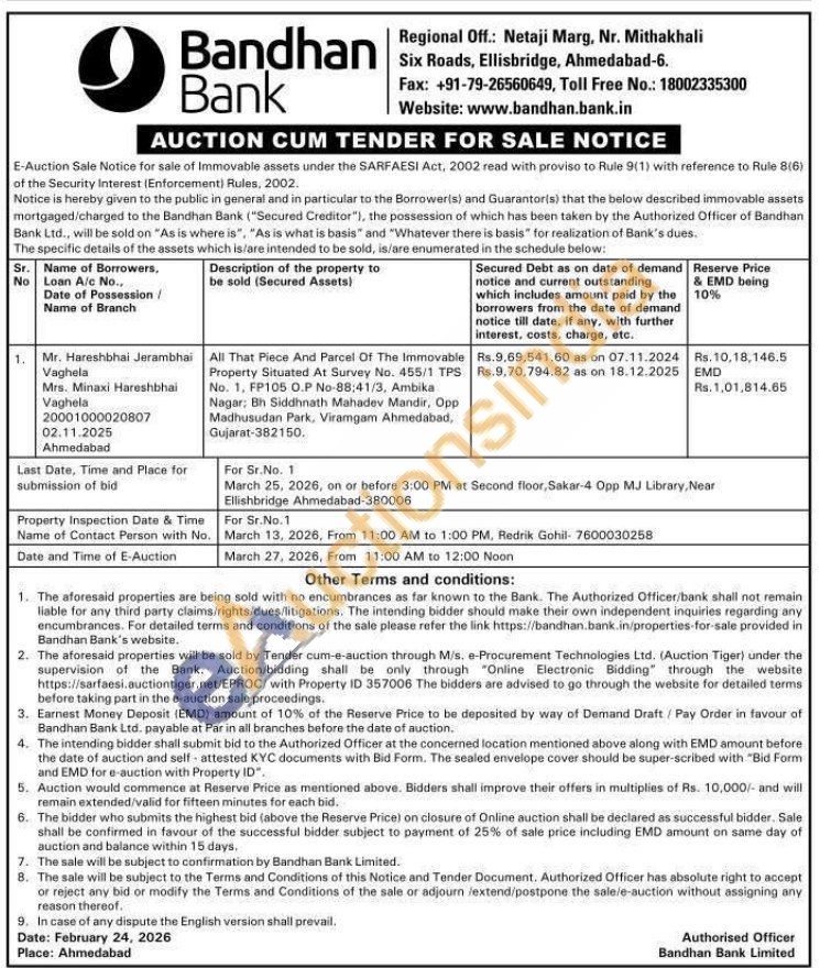 All That Piece And Parcel Of The Immovable Property Situated At Survey No. 455/1 TPS No. 1, FP105 O.P No-88:41/3, Ambika Nagar: Bh Siddhnath Mahadev Mandir, Opp Madhusudan Park, Viramgam Ahmedabad, Gujarat-382150.