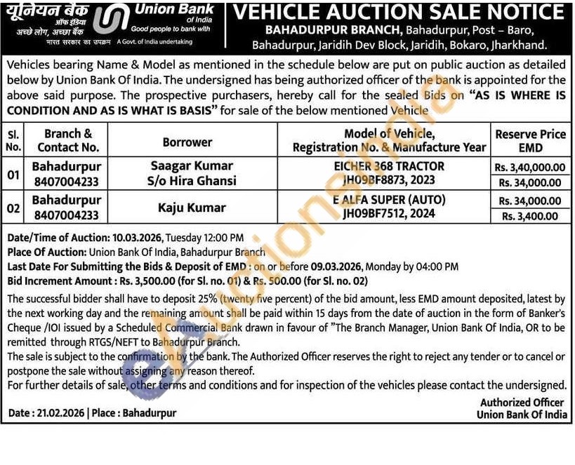 Model of Vehicle, Registration No. & Manufacture Year EICHER 368 TRACTOR JH09BF8873, 2023