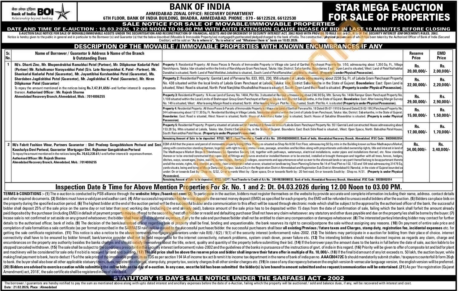 Authorised Officer: Mr. Rajesh Sharma Mobile No : 7014006255