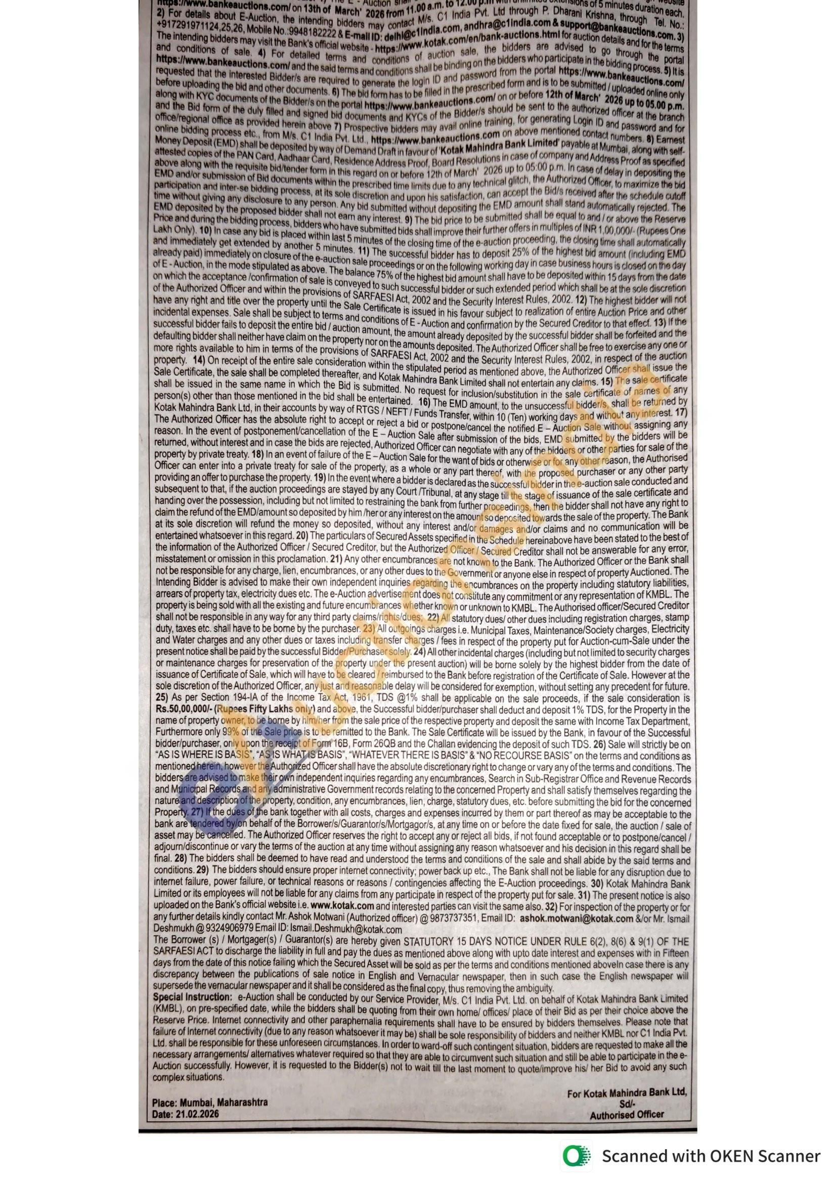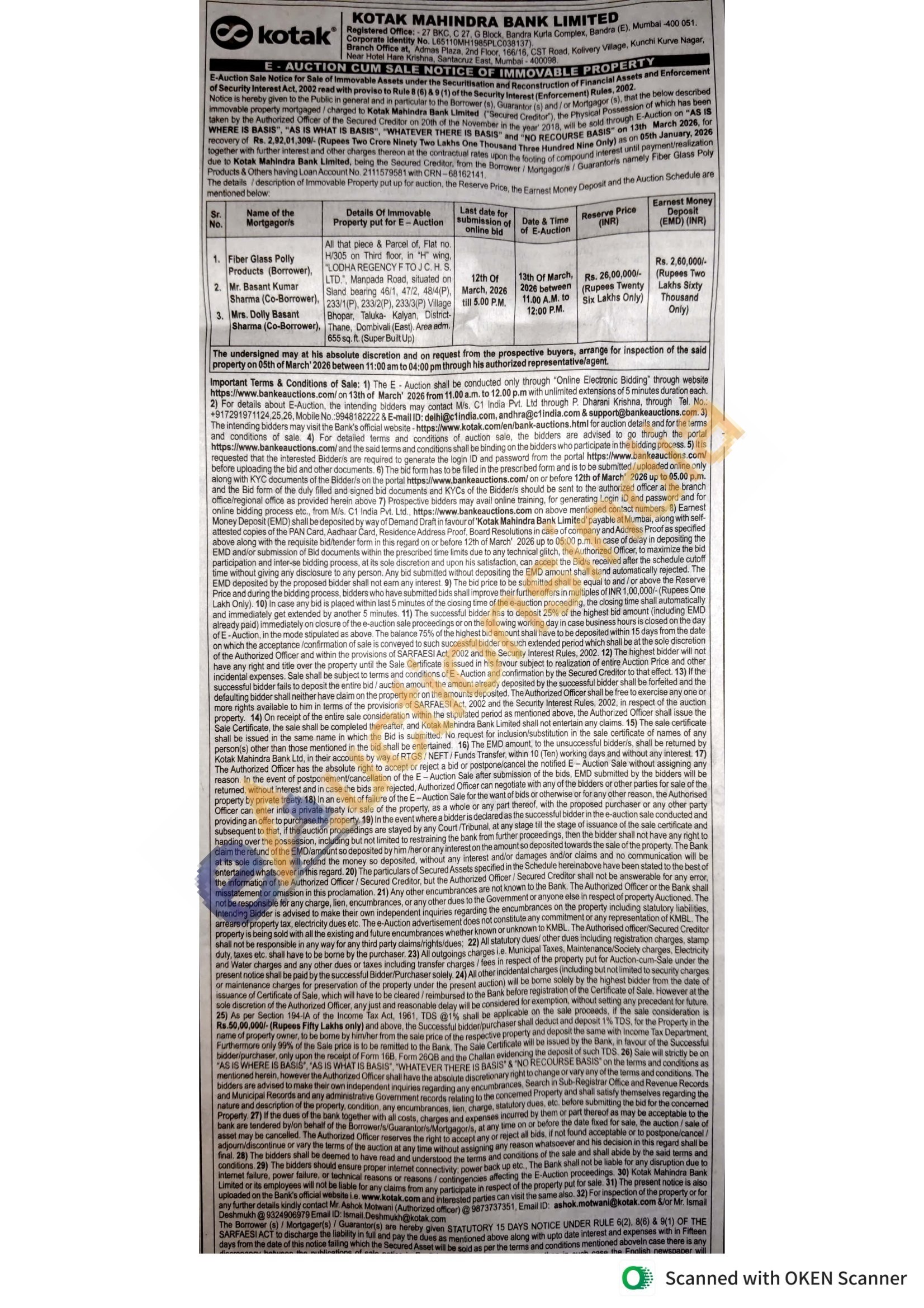 Contact Mr. Ashok Motwani (Authorized officer) @9873737351