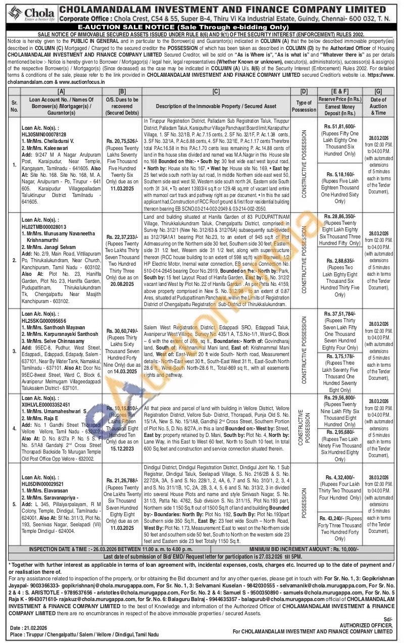 Salem West Registration District, Edappadi SRO, Edappadi Taluk, Avaniper ur West Village, Survey No. 435/1 A, T.S.No-1/1, Ward-C, Block -6 with the extent of 869 sq ft., Boundaries: North of: Govindharaj land, South of: Krishnammal Mani land, East of: Krishnammal Mani land, West of: East-West 20 ft wide South- North road, Measurement details:-North-East west 30 ft., South-East West 31 ft., East-South North 28.6 ft., West-South North-28.6 ft., Total-869 sq ft., with all easements rights and pathway