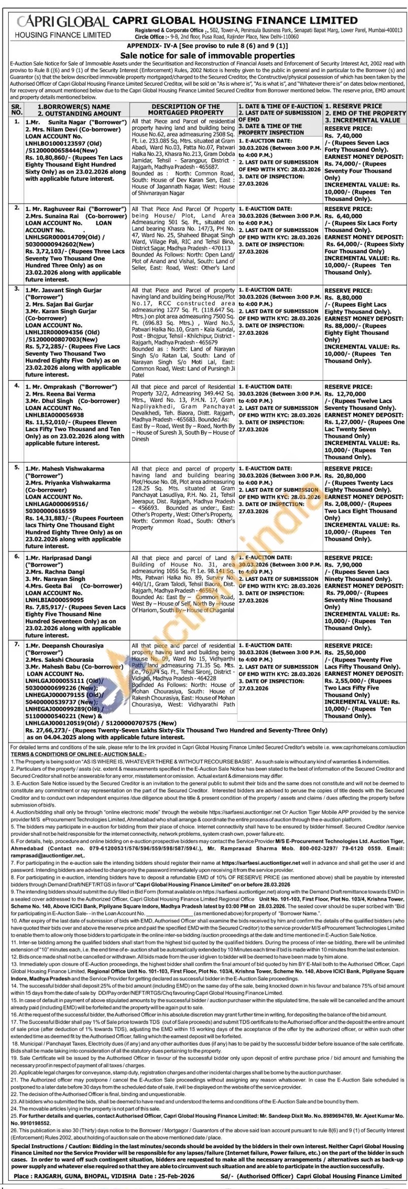 contact Authorised Officer, Mr. Sandeep Dixit Mo. No. 8989694769, Mr. Ajeet Kumar Mo. No. 9910198552