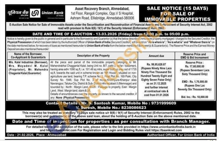 All the piece and parcel of the immovable property belonging to Mr. Mahendrabhai Chagganlal Kalal, being Unit no. 8/7, paiki-3, cellar/basement, having area adm 1090 sq.ft. i.e. 101.48 sq mirs, super built up area out of 1735 sq.ft, towards the said unit in scheme known as "NR House", situated on non-agriculture use land, bearing T.P. scheme No. 3, Final Plot No. 169 Paiki, City Survey No. 1946, Sup Plot No. 3 of mouje Khekhpura-Khanpur alias Navrangpur, Taluka-City, District & Sub-District-Ahmedabad-3 (Memnagar) and bounded by: North: Margin Land, South Passage to property, East: Margin Land, West: Margin land, stairs & Lift Details of encumbrances over the property, as known to the secured creditor, if any: None (Physical Possession)