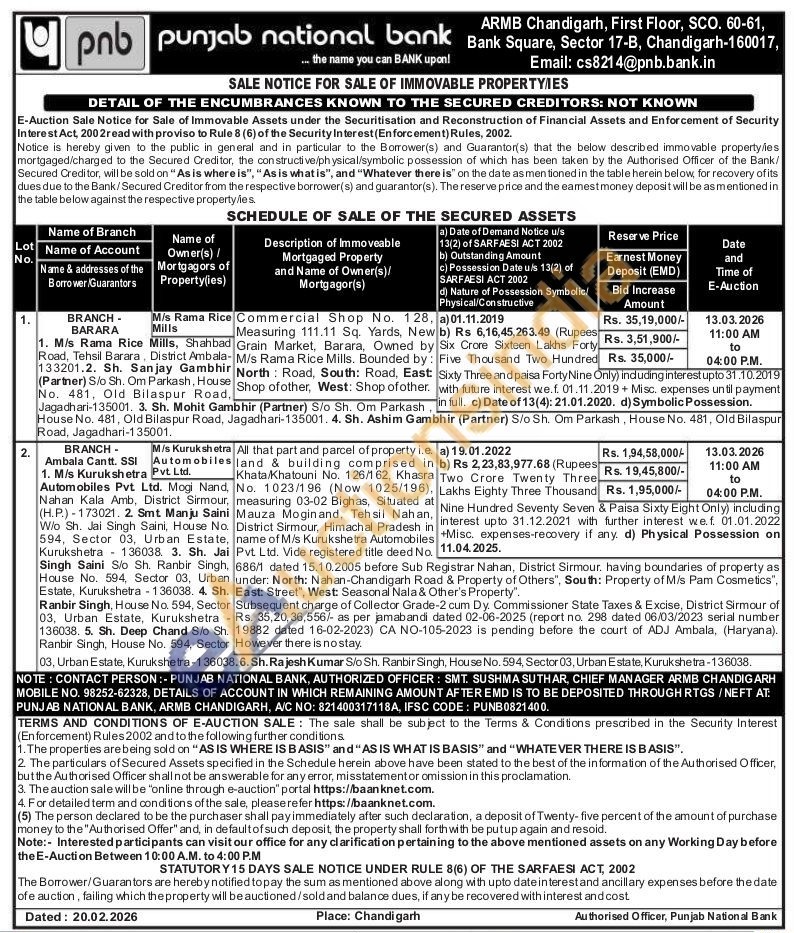 All that part and parcel of property i.e. land & building comprised in Khata Khatouni No. 126/1 62, Khasra No. 1023/196 (Now 1025/196), measuring 03-02 Bighas, Situated at Mauza Moginand, Tehsil Nahan, District Sirmour, Himachal Pradesh in name of M/s Kurukshetra Automobiles Pvt Ltd. Vide registered title deed No. 686/1 dated 15.10.2005 before Sub Registrar Nahan, District Sirmour. having boundaries of property as under: North: Nahan-Chandigarh Road & Property of Others", South: Property of M/s Pam Cosmetics", East: Street", West: Seasonal Nala & Other's Property". Subsequent charge of Collector Grade-2 cum Dy. Commissioner State Taxes & Excise, District Sirmour of Rs. 35,20,36,556/- as per jamabandi dated 02-06-2025 (report no. 298 dated 06/03/2023 serial number 19882 dated 16-02-2023) CA NO-105-2023 is pending before the court of ADJ Ambala, (Haryana). However there is no stay.