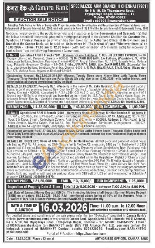 1) All that piece and parcel of house, ground and premises bearing New Door No.37, Old No.21, Varasidhi Vinayagar koil Street (VVKoil street), Vepery, Chennai 600003, comprised in R.S.No. 246. DS No.610 part, CC. No 3678/A measuring an extent of 1 Ground and 455 Sq.ft. or thereabouts and bounded on the North by: ST. Abdul Suhur Saheb's House, South by: Anjaneya Temple, East by Varasidhi Vinayagar Koil Street, West by Kota Munirathinam Chetty's house, Situated within Registration Sub District of Periamet and Registration District of Chennai Central CERSAI ID: 400055723305