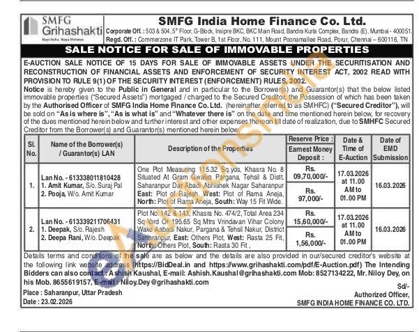 One Plot Measuring 115.32 Sq.yds, Khasra No. 8 Situated At Gram Gwalira Pargana, Tehsil & Distt Saharanpur Dar Abadi Abhishek Nagar Saharanpur East: Plot of Rajesh, West: Plot of Rama Aneja, North: Plot of Rama Aneja, South: Way 15 Fit Wide.