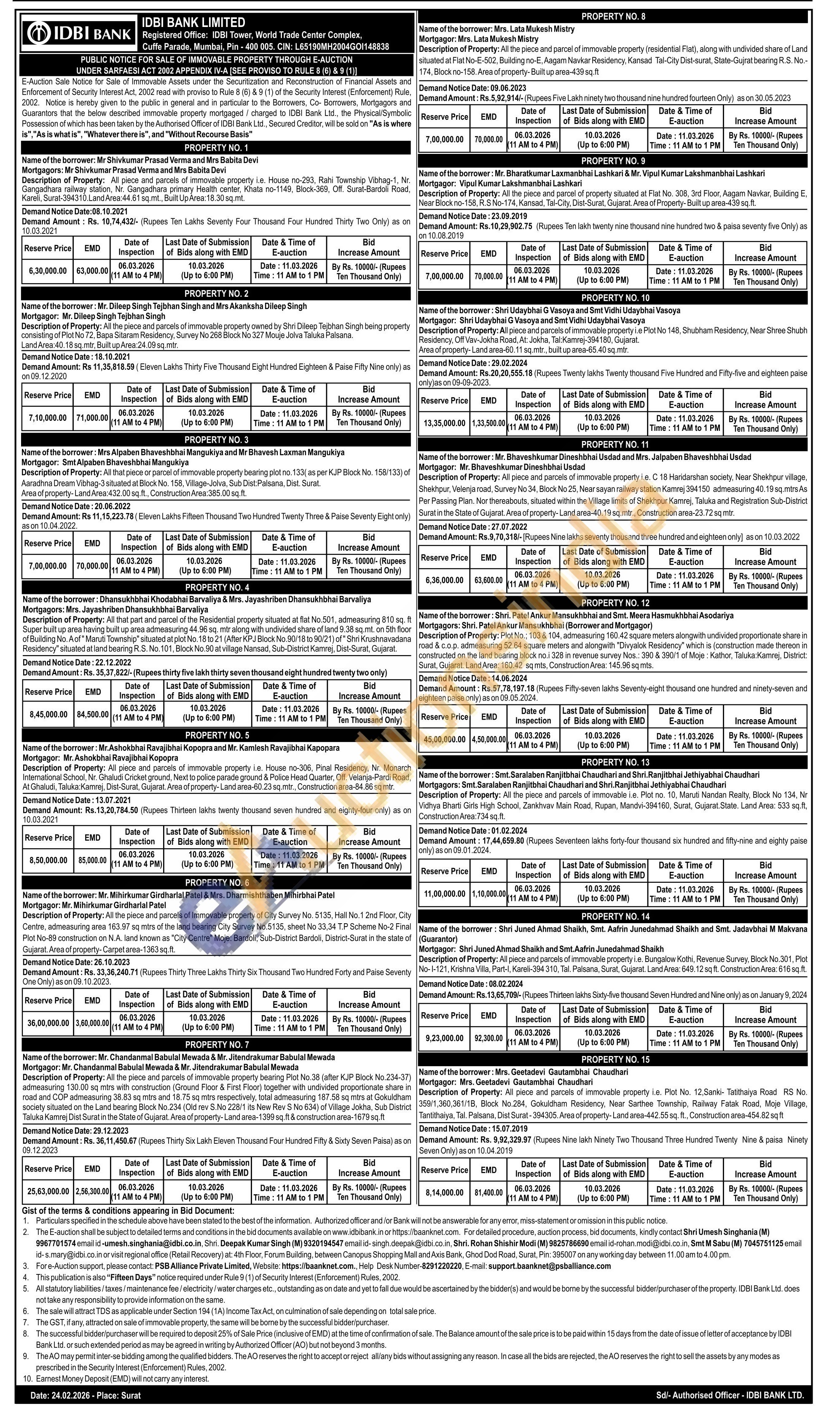 Description of Property: All the piece and parcels of immovable property bearing Plot No.38 (after KJP Block No.234-37) admeasuring 130.00 sq mtrs with construction (Ground Floor & First Floor) together with undivided proportionate share in road and COP admeasuring 38.83 sq mtrs and 18.75 sq mtrs respectively, total admeasuring 187.58 sq mtrs at Gokuldham society situated on the Land bearing Block No.234 (Old rev S.No 228/1 its New Rev S No 634) of Village Jokha, Sub District Taluka Kamrej Dist Surat in the State of Gujarat. Area of property-Land area-1399 sq.ft & construction area-1679 sq.ft