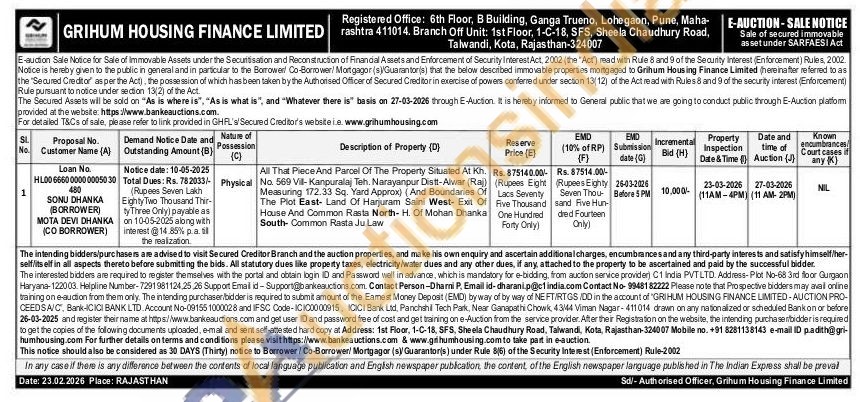 All That Piece And Parcel Of The Property Situated At Kh. No. 569 Vill-Kanpuralaj Teh. Narayanpur Distt-Alwar (Raj) Measuring 172.33 Sq. Yard Approx) (And Boundaries Of The Plot East-Land Of Harjuram Saini West- Exit Of House And Common Rasta North- H. Of Mohan Dhanka South- Common Rasta Ju Law