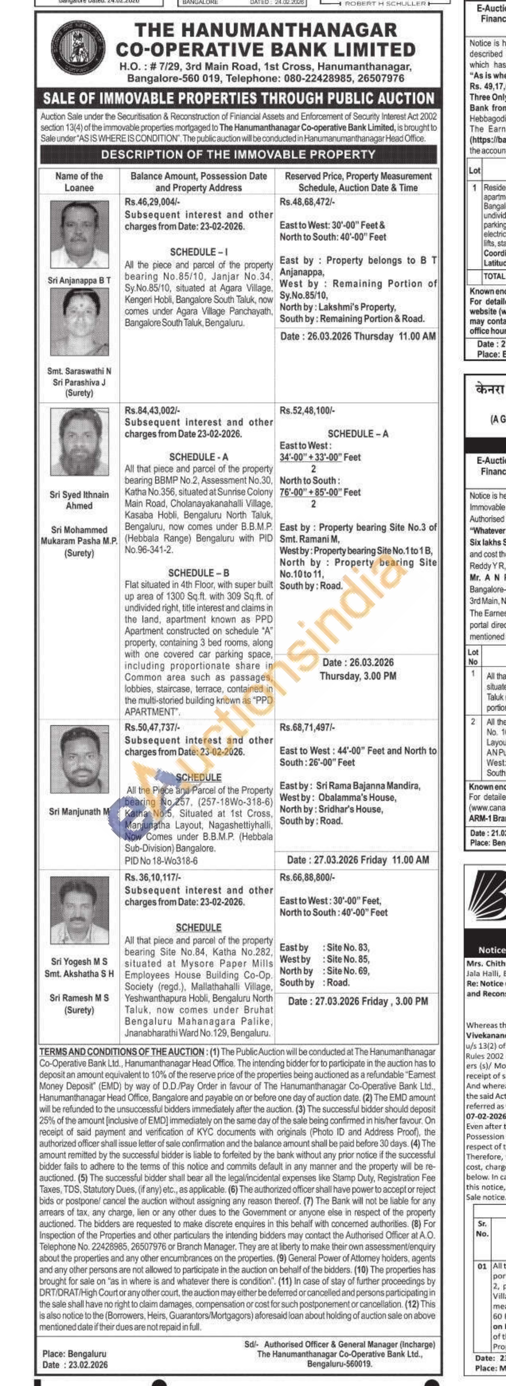 All the Piece and Parcel of the Property bearing No.257. (257-18Wc-318-6) Katha No.5. Situated at 1st Cross, Manjunatha Layout, Nagashettiyhalli, Now Comes under B.B.M.P. (Hebbala Sub-Division) Bangalore. PID No 18-Wo318-6 East to West: 44' -00^ Feet and North to South: 26' -00^Feet East by: Sri Rama Bajanna Mandira, Westby: Obalamma's House, North by: Sridhar's House, South by: Road.