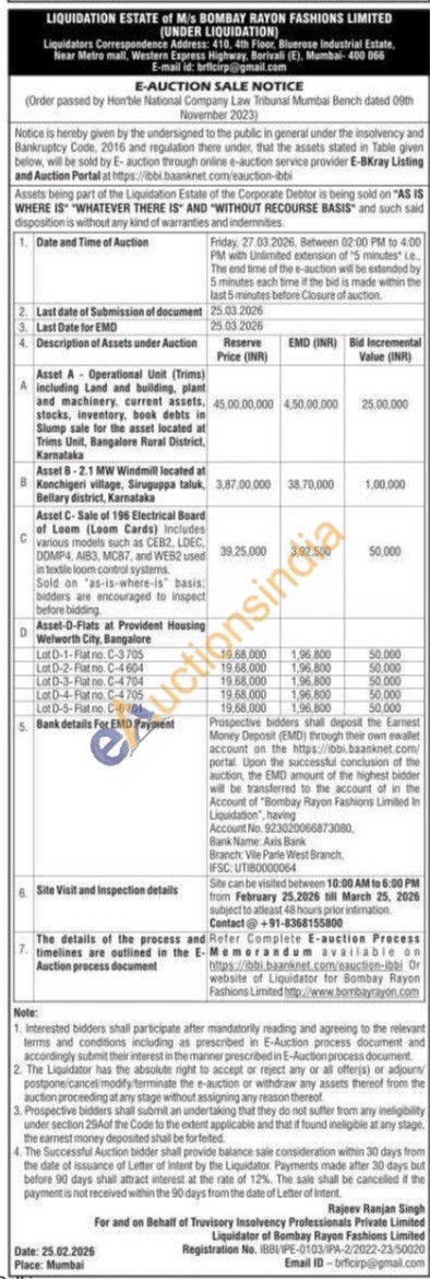 Asset A Operational Unit (Trims) including Land and building, plant and machinery, current assets, stocks, inventory, book debts in Slump sale for the asset located at Trims Unit, Bangalore Rural District, Karnataka